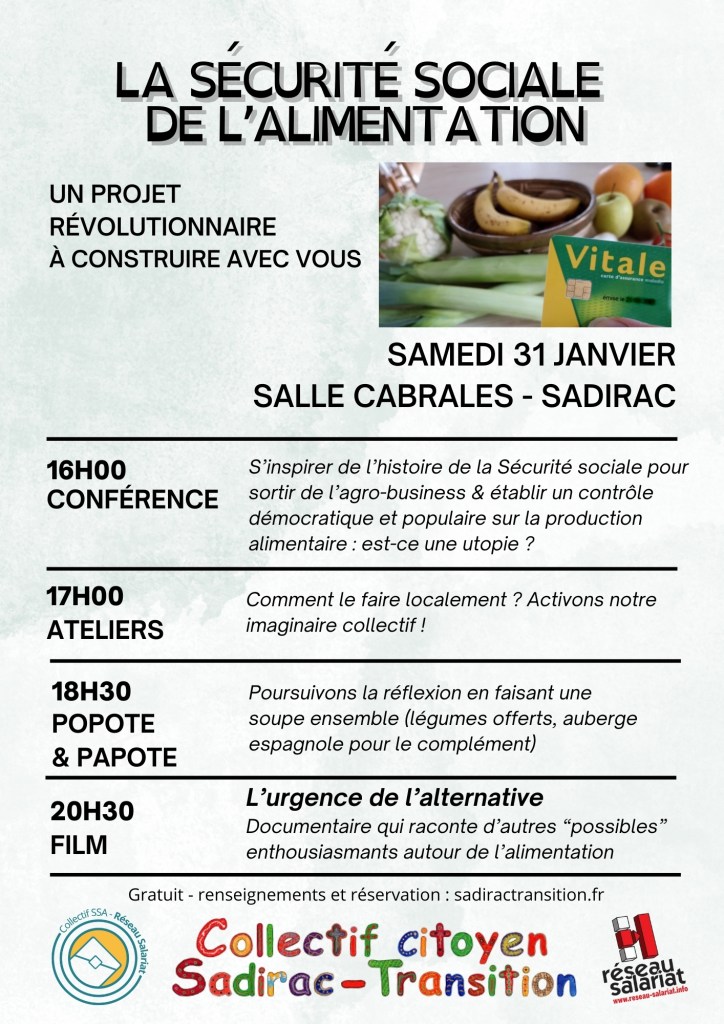 Nous organisons une après-midi et soirée autour de la Sécurité Sociale de l’Alimentation le 31 janvier 2026 dans la salle Cabrales.