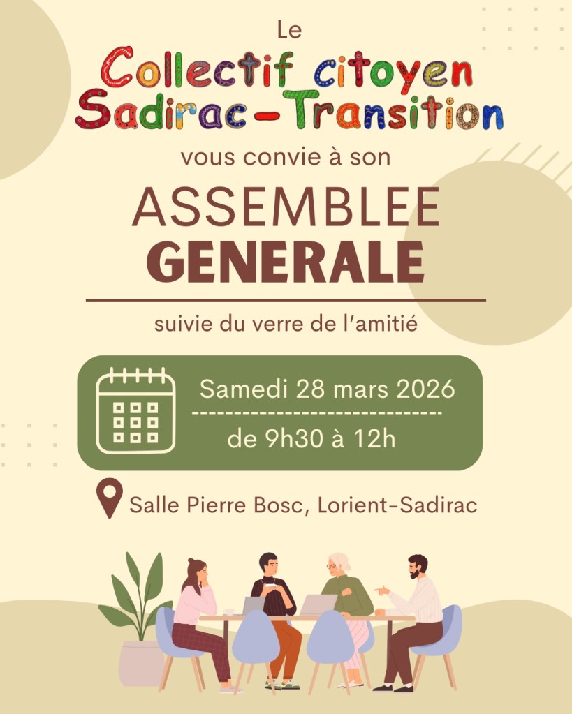 Nous sommes à un tournant dans notre commune : si nous voulons une commune vivable pour tous et toutes demain et dans le futur, nous devons opérer un tournant dans nos pratiques individuelles et collectives. Il y a urgence démocratique, écologique et sociale. Notre Collectif citoyen sadiracais adhère à la démarche nationale du "Pacte pour la Transition, Construire ensemble les communes de demain" créé à l'initiative de plus de cinquante associations nationales. Pour plus d'information consulter pacte-transition.org Notre Collectif local pour la Transition souhaite créer une dynamique à Sadirac où citoyens et élus contribuent ensemble à l'élaboration des décisions qui organisent le bien vivre à Sadirac et tiennent compte de l'urgence des enjeux climatiques et sociaux.