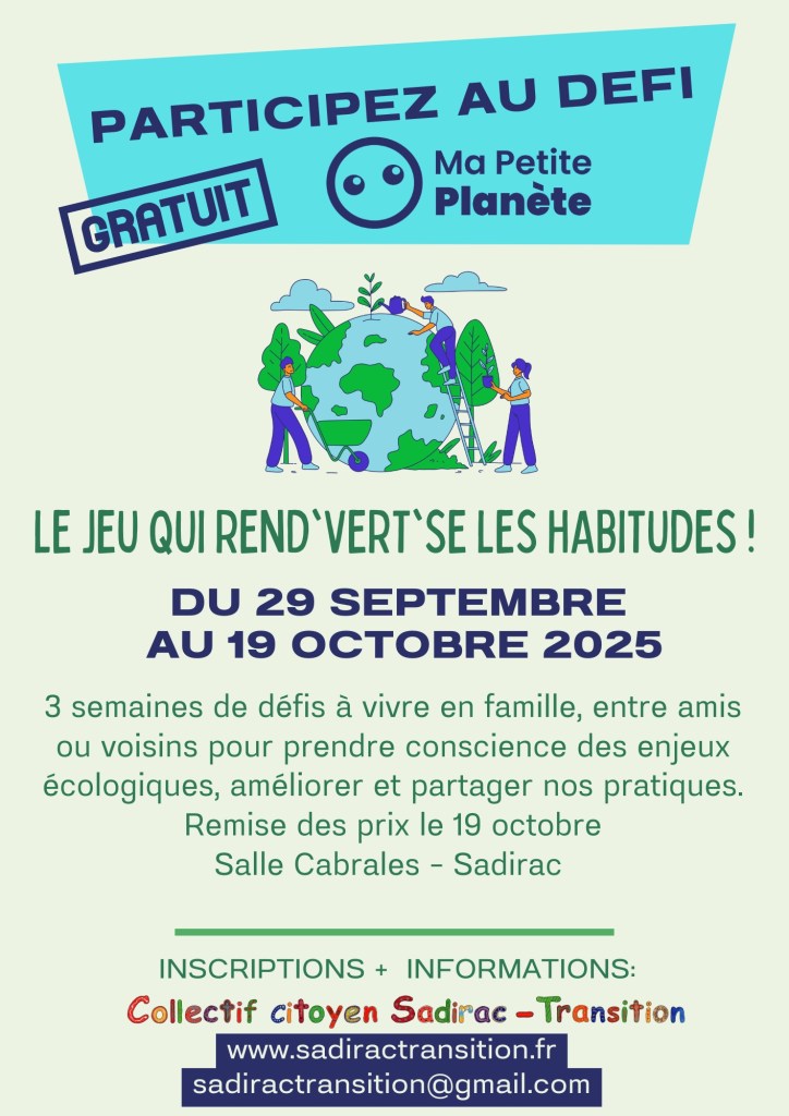 Le collectif propose le défi environnemental « Ma Petite Planète » (MPP pour les intimes) développé par une association loi de 1901 depuis 2019 permettant de se lancer des défis à vivre entre ami.e.s, famille, voisin.e.s ou collègues pour prendre conscience des enjeux écologiques, améliorer et partager nos pratiques. Déjà plus de 600.000 personnes ont participé, c’est votre tour !
