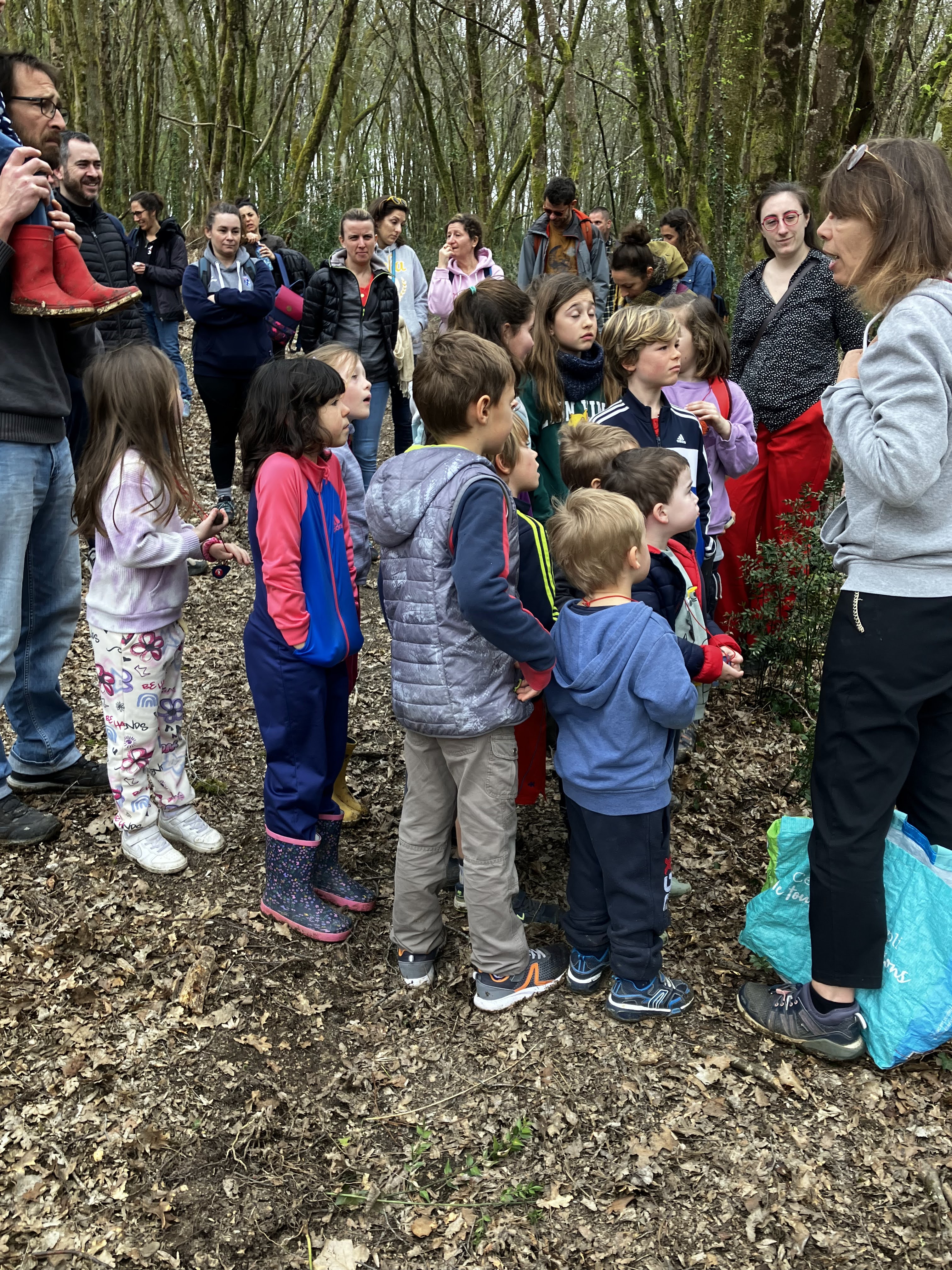 Cette première animation a eu lieu l’après-midi du samedi 18 mars 2023, dans le cadre de la Journée Internationale des Forêts, sous la halle du bourg de Sadirac. Des panneaux et des stands d’information, un coin lecture, une balade guidée en forêt, un goûter offert, et pour terminer, les contes de la forêt par Josiane Millot, conteuse. Un joli succès qui a réuni 60 à 70 personnes, dans une ambiance familiale et conviviale.