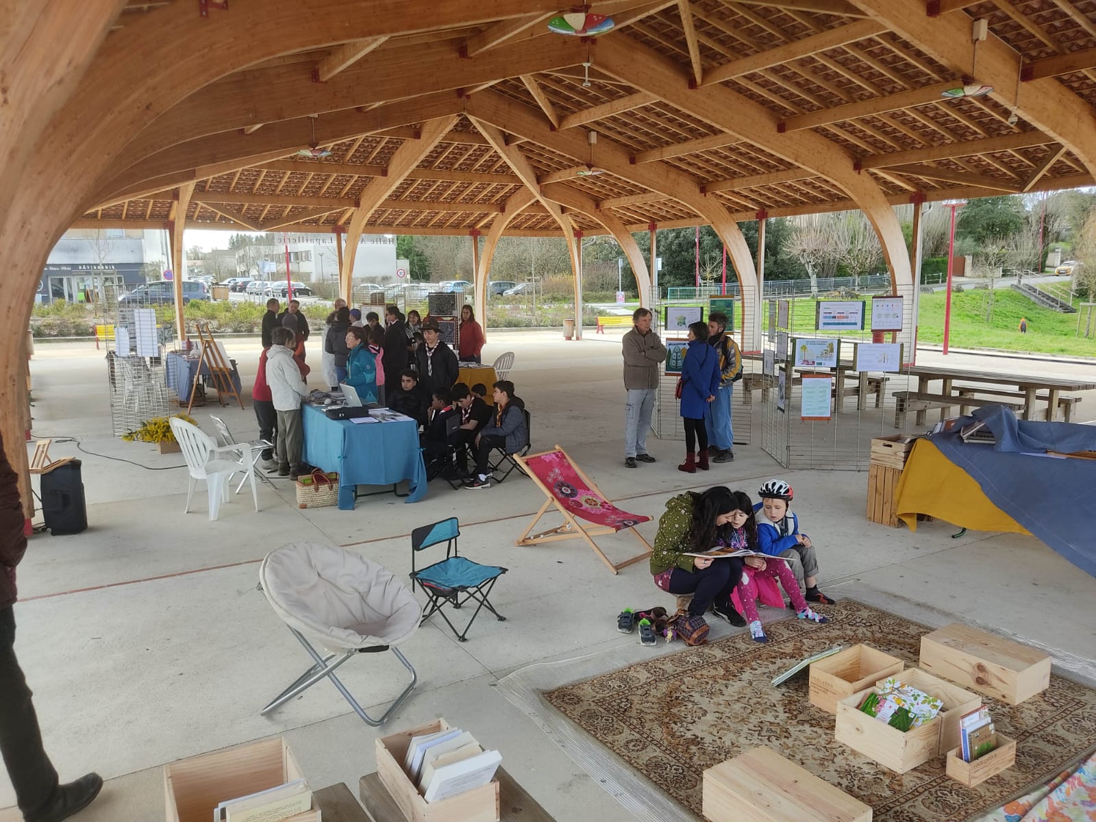 C’est ainsi que le dimanche 17 mars 2024, toujours sous la halle du bourg, cette fois-ci un dimanche et toute la journée, a eu lieu la journée de sensibilisation récréative pour tous « A la rencontre de la forêt sadiracaise ».