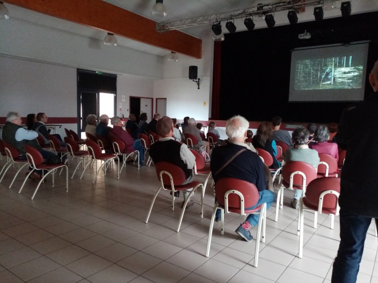 Le 19 octobre 2025, nous avons organisé dans la salle des fêtes de Sadirac la projection gratuite du documentaire « Le Temps des forêts » de François-Xavier Drouet, qui explique l’ensemble des problématiques que pose la gestion forestière industrielle et les alternatives respectueuses de la forêt et économiquement viables qui existent.